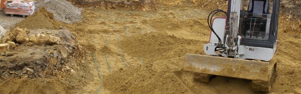 Bei ausreichender Fläche werden Flachkollektoren auf dem Grundstück verlegt. Spiralförmige Kollektoren oder Erdsonden (Tiefenbohrung) können je nach Genehmigungslage und Grundstücksnutzung Alternativen darstellen.